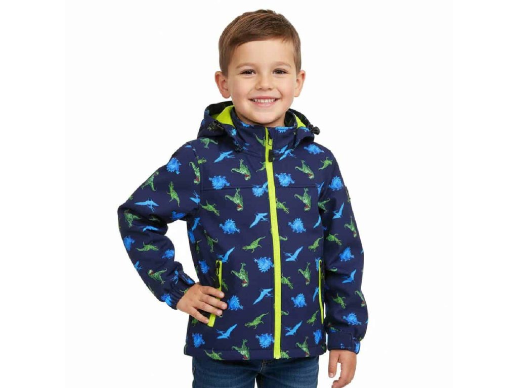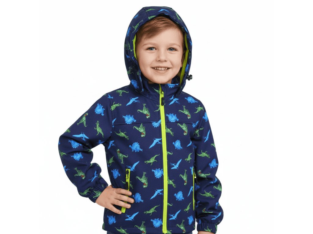 CHLAPECKÁ SOFTSHELLOVÁ BUNDA S FLEECEM DINOSAUŘI
