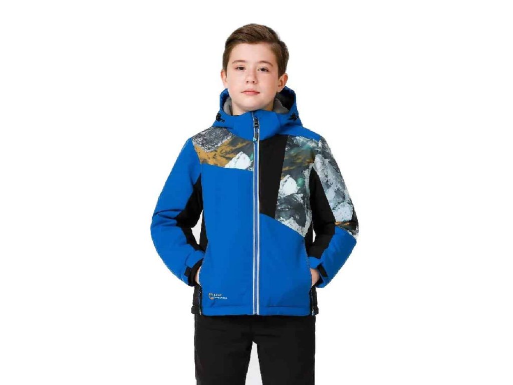 Chlapecká zimní bunda z pevného nepromokavého šusťáku, zateplená a podšitá fleecem, odolná vůči sněhu i dešti. Bunda má odepínací kapuci na zip, která má gumičky s olivkami pro stažení kapuce k hlavě, a suché zipy, které slouží k přidělání kapuce do tunýlků v límci, aby kapuce neplandala.