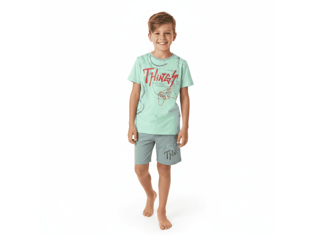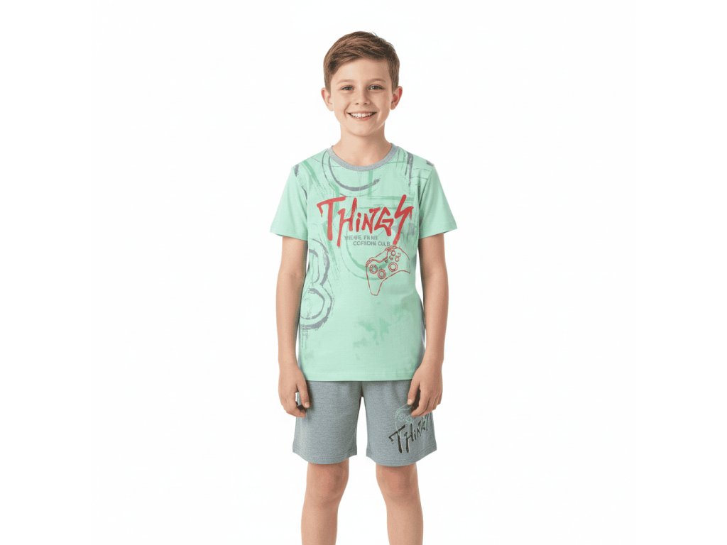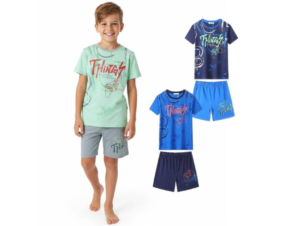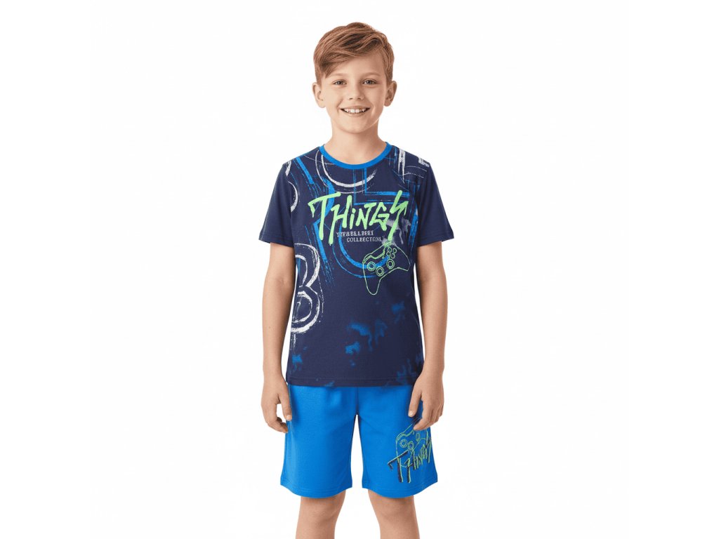 Chlapecký letní komplet můžete využít, jak na ven nebo jako pyžamo do postele, tak na lítačku na ven. Tričko je s krátkým rukávem v pěkném designu. Kraťasy jsou volného střihu a v pase do pohodlné, pružné gumy. Ideálně využijete v teplých dnech .