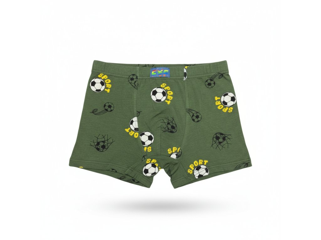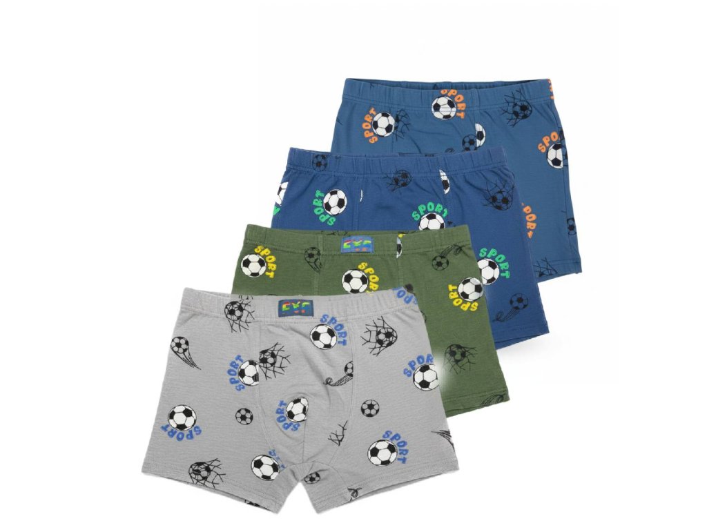 Dětské chlapecké boxerky s obrázkem fotbalový míč. Moc pěkné, pohodlné a pružné. V pase jsou do pružné gumy.