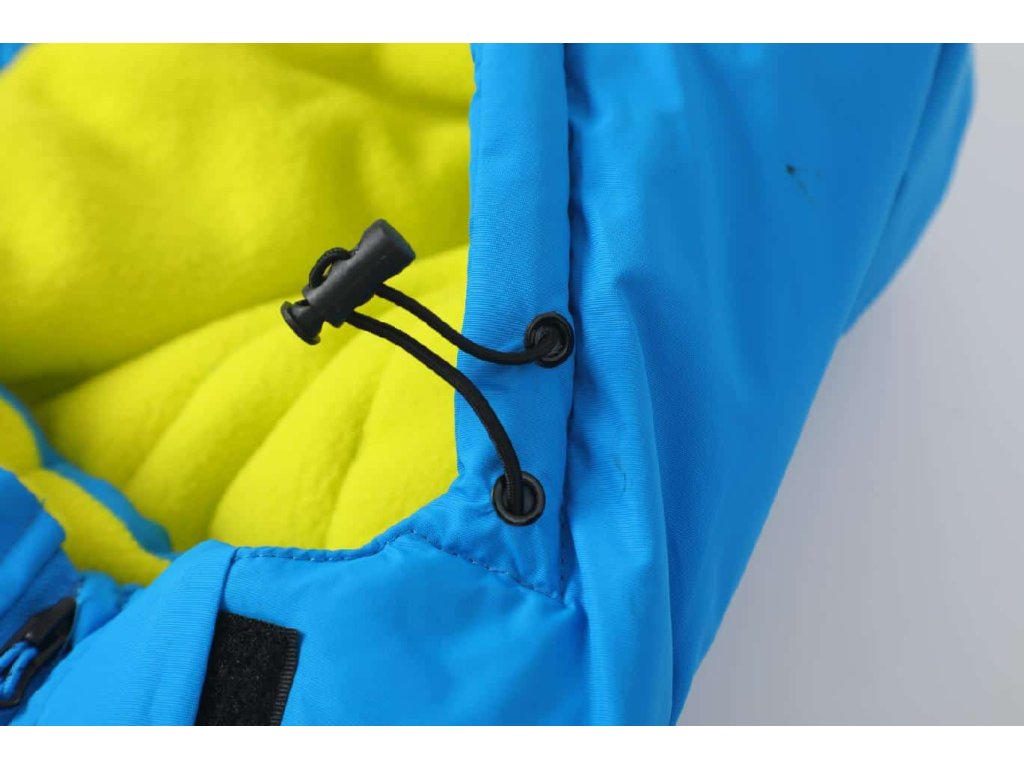 Zimní dětská bunda z pevného nepromokavého šusťáku, zateplená a podšitá fleecem, odolná vůči sněhu i dešti. Bunda má odepínací kapuci na zip, která má gumičky s olivkami pro stažení kapuce k hlavě, a suché zipy, které slouží k přidělání kapuce do tunýlků v límci, aby kapuce neplandala.