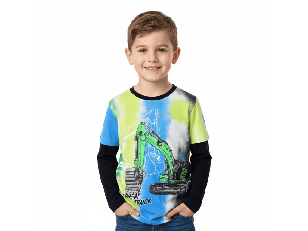 DĚTSKÉ TRIČKO S BAGREM A DLOUHÝM RUKÁVEM