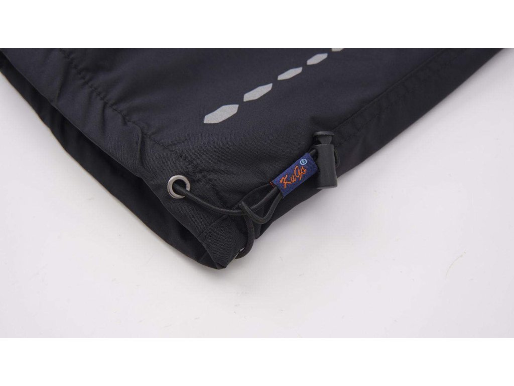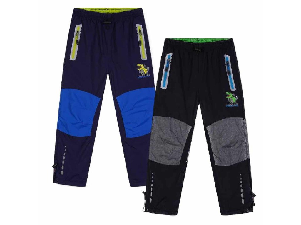 Šusťákové kalhoty s fleecovou podšívkou, které v zimě zahřejí. Materiál je voděodolný pevný šusťák. Kalhoty jsou v pase do gumy s možností regulace obvodu pasu gumičkou s olivkou. Mají dvě funkční kapsy na zipy s táhly pro snadné rozepínání. Nohavice jsou dole na stažení olivkou, aby do nohavic nefoukalo a nevnikl pod nohavici sníh.