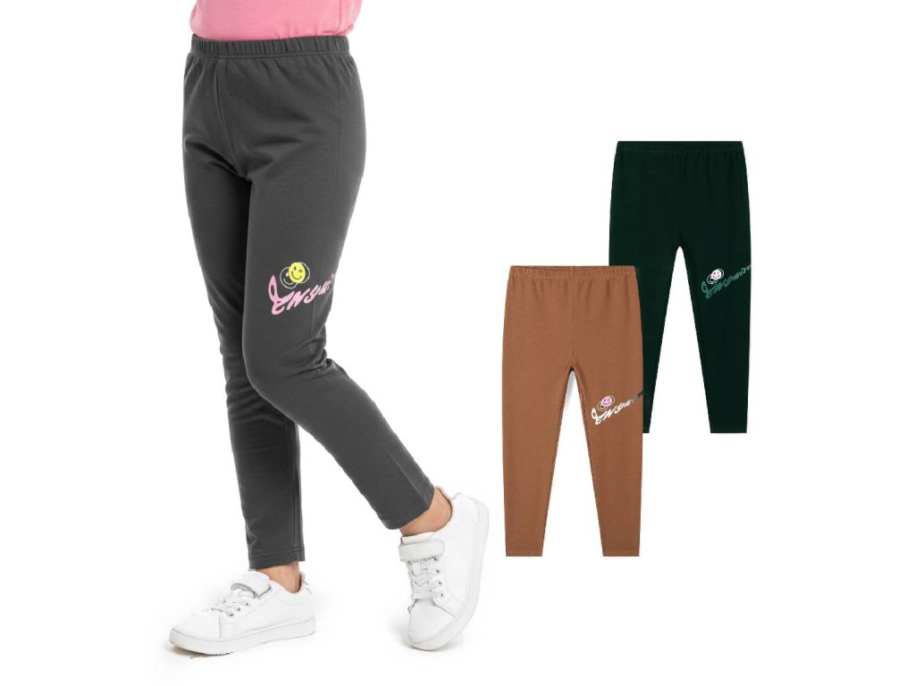 DÍVČÍ LEGÍNY BAVLNĚNÉ PRUŽNÉ SMAJLÍK