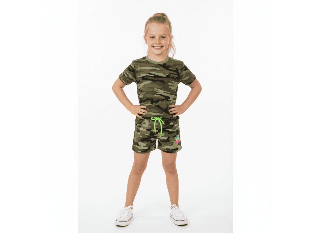 Dívčí kraťasy z maskáčové teplákoviny. Kraťasy jsou v pase do gumy a ještě na stažení tkaničkou. Jsou velmi pohodlné a prodyšné. Maskáčové kraťasy pro holky se hodí na denní nošení, do města i na letní tábor. Pro milovnice maskáčového oblečení.