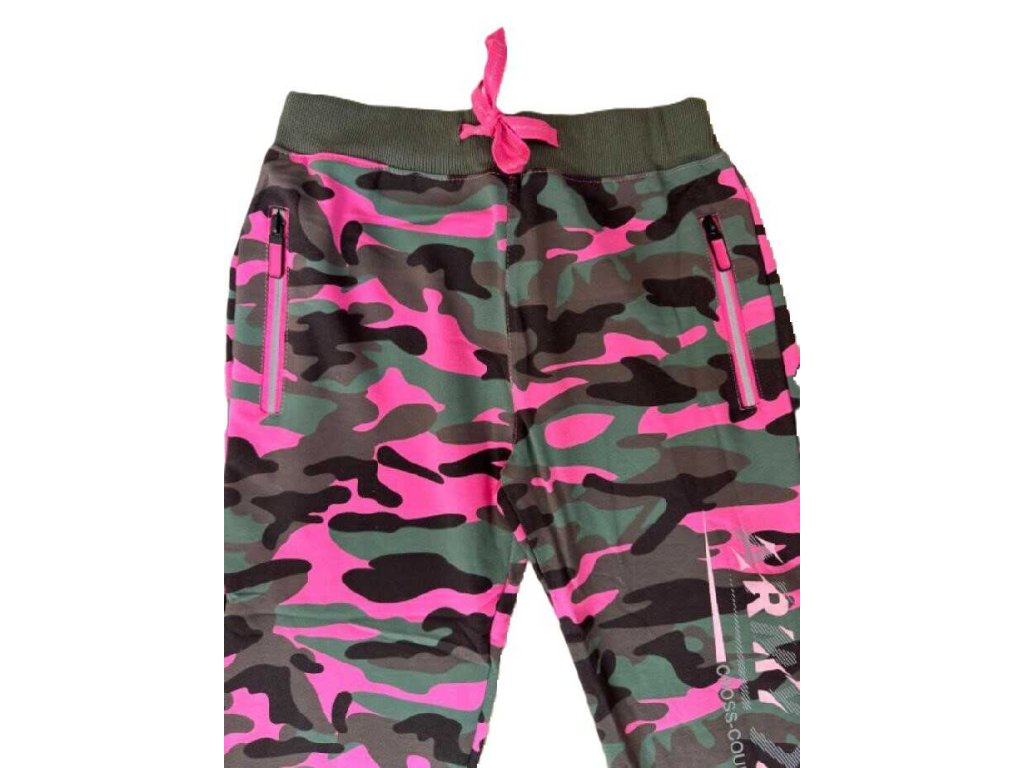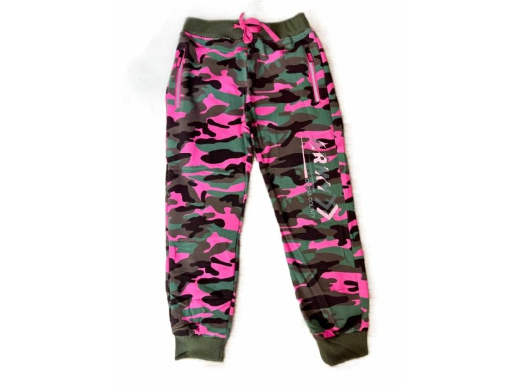 Dětské dívčí maskáčové tepláky značky KUGO. Velmi pěkné tepláky pro dívky, v pase jsou do pružné gumy a s tkaničkami na úpravu obvodu pasu. Tepláky mají dvě postranní kapsy. Nohavice jsou zakončeny nápletem, pro lepší oblékání a proto, aby nepřepadávaly přes botu a držely na kotníku.