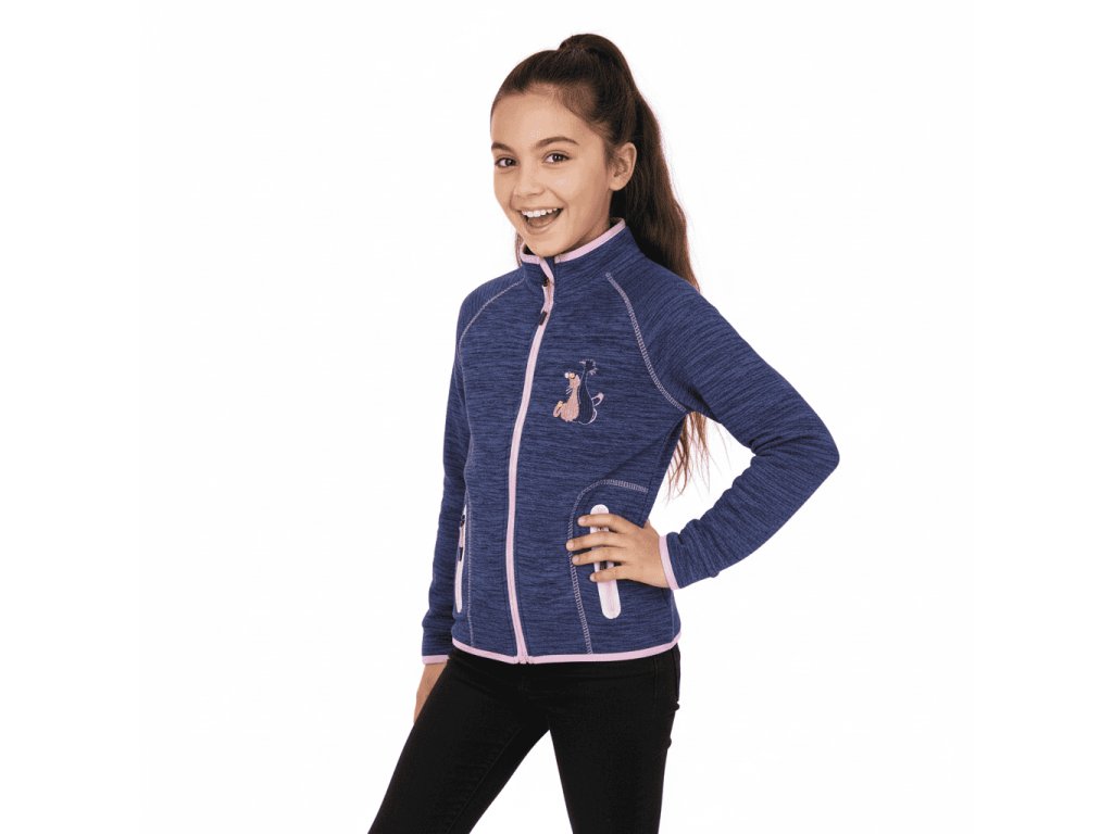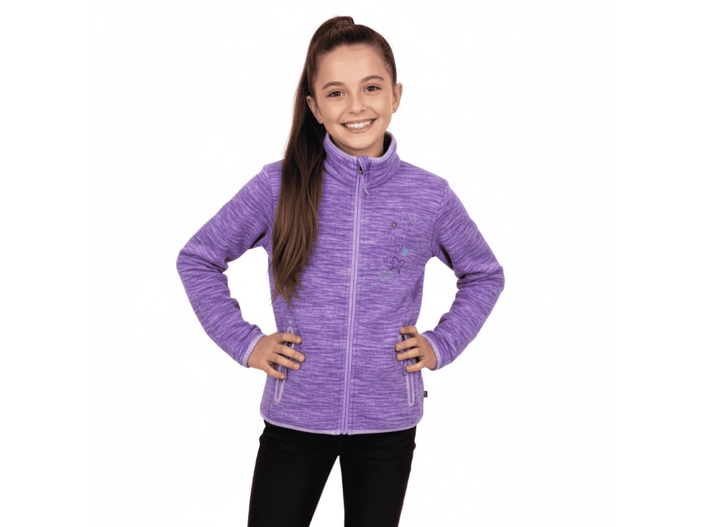 Hřejivá dívčí fleecová mikina s výšivkou Kočky . Mikina rozepínací na zip, který je zakončen krytkou proti odření brady. Dvě boční kapsy na zipy. Vhodná do školy, do města i na ven.