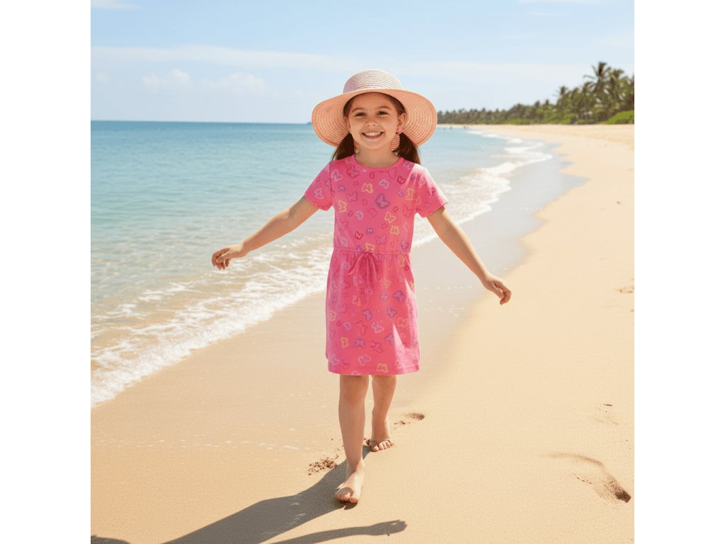 A léto může začít! Dětské šaty značky KUGO nesmí chybět v žádném dívčím šatníku. Jsou posety malými barevnými motýlky. Šaty tak potěší každou malou parádnici. Hodí se na denní nošení, do města i na volný čas, do školky.