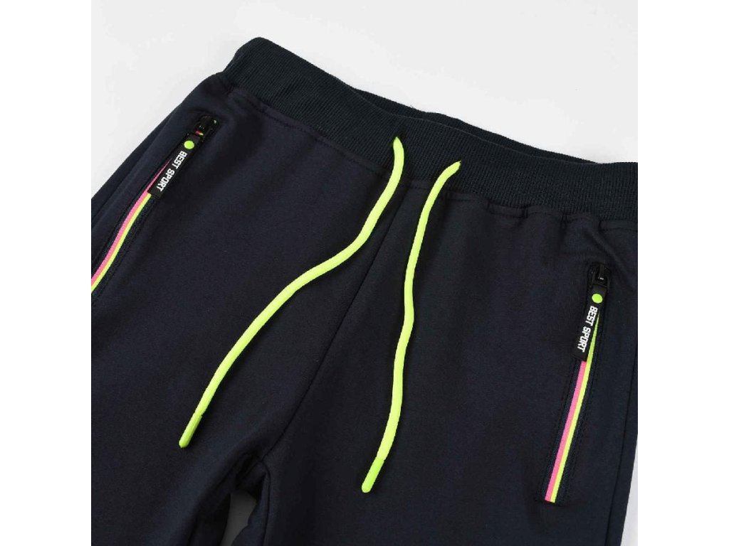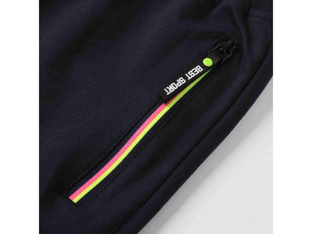 Dětské dívčí tepláky jsou z velmi příjemného a lehkého materiálu. V pase jsou do pružné gumy v nápletu a tkaničky na stažení. Tepláky mají dvě postranní kapsy na zipy, nohavice jsou do nápletu. Materiál nežmolkovatí a i po několika vypráních kalhoty vypadají jako nové. Doporučuji !
