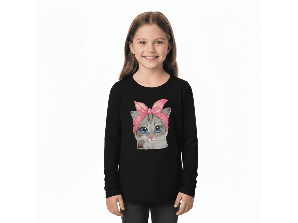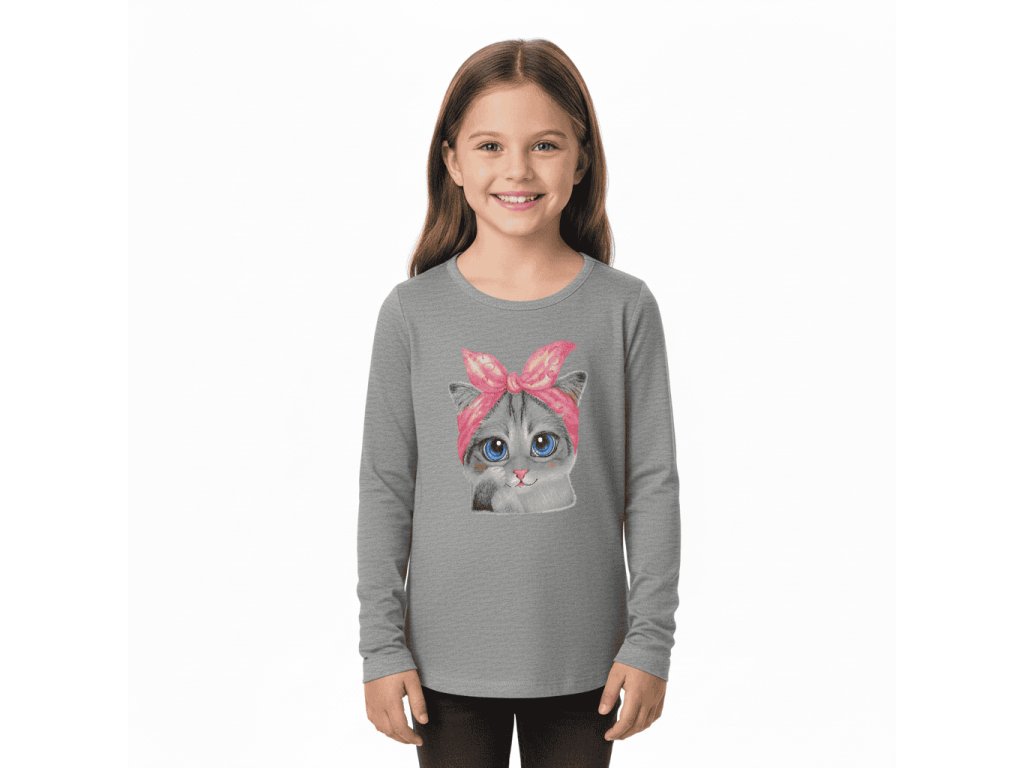 DÍVČÍ TRIČKO S KOČKOU A DLOUHÝM RUKÁVEM
