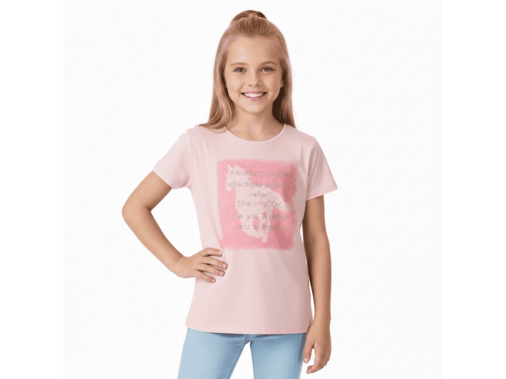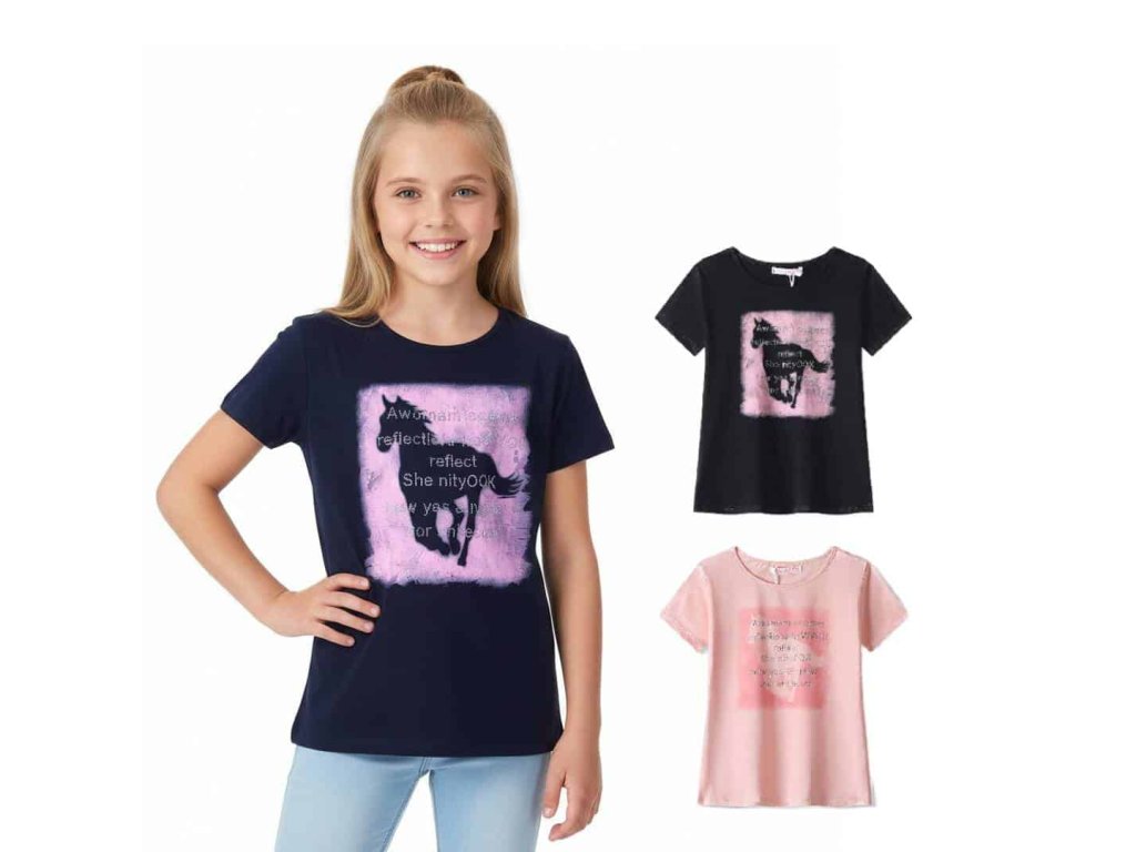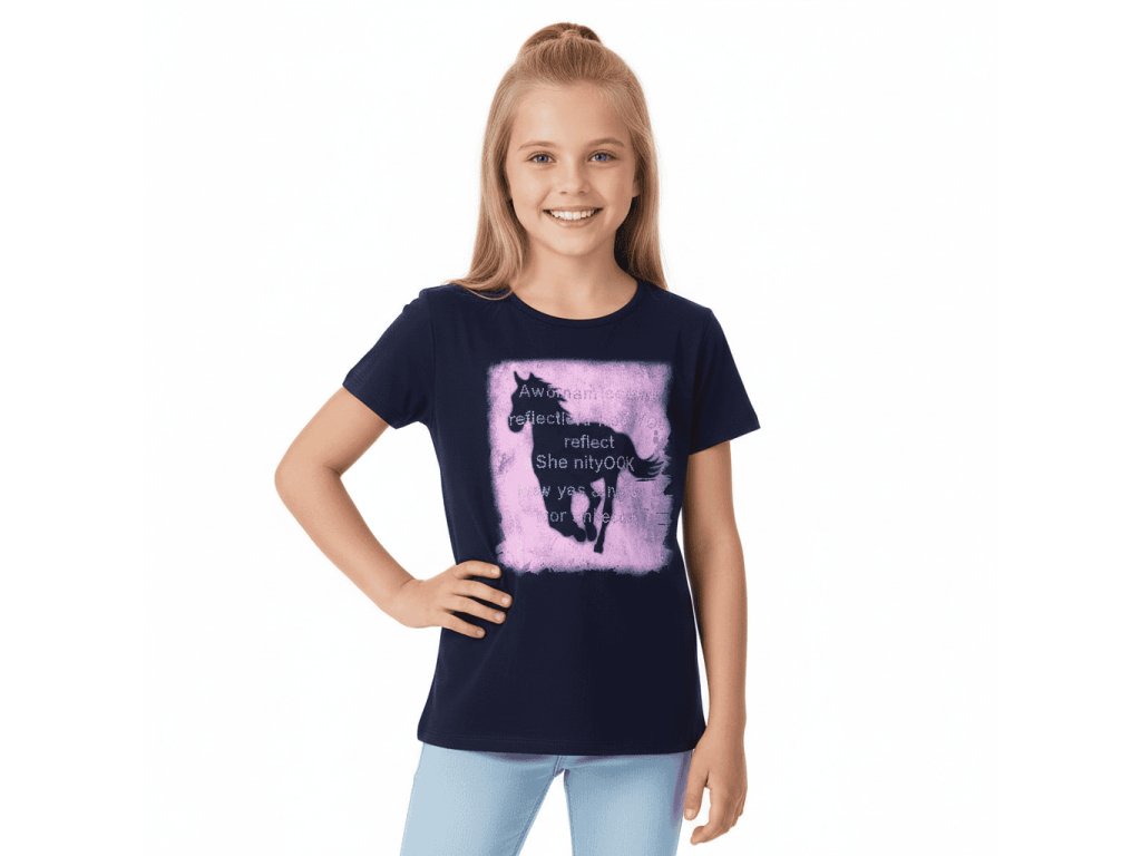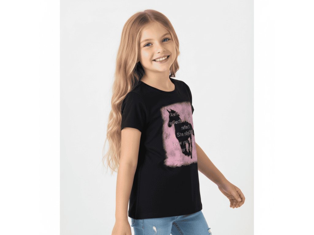 Dívčí tričko s krátkým rukávem a roztomilým obrázkem koně, potěší každou malou parádnici. Dětské tričko se hodí jak na běžné nošení, tak i do školy a školky nebo na výlety do města.