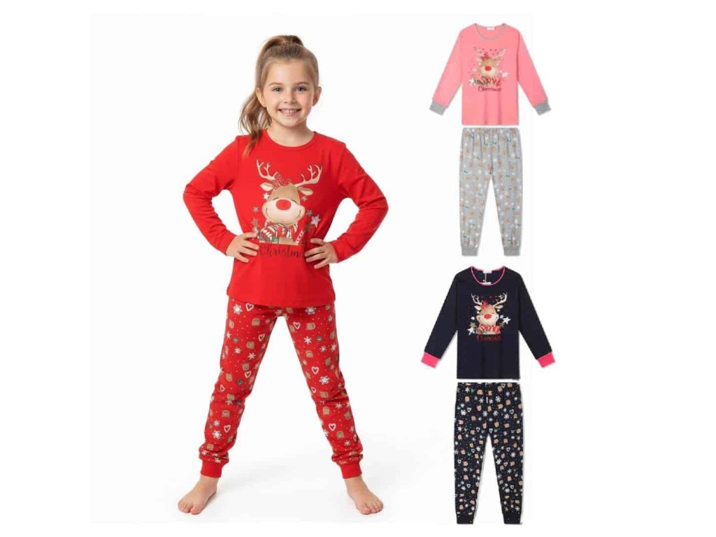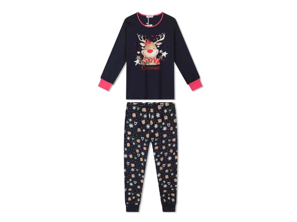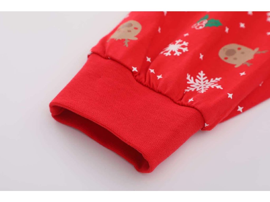 Dětské pyžamo s obrázkem s motivem Vánoc. Na rukávech a na nohavicích je pružný náplet, aby se jednoduše oblékalo. V pase jsou kalhoty do pohodlné pružné gumy.