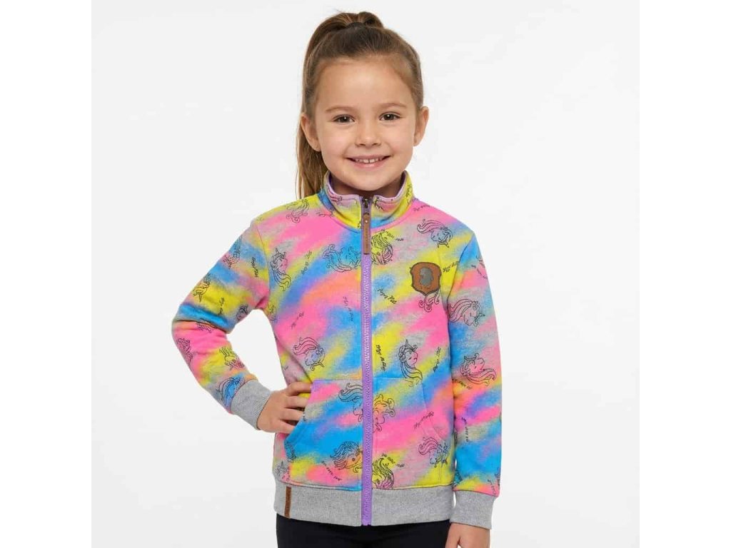 Dívčí bavlněná mikina je zateplená chloupkem, velice vhodná pro chladné období. Dívčí mikina na zip a vpředu má dvě kapsy. Mikina je s obrázkem jednorožce. Mikina je vhodná na běžné celoroční nošení, ale největší využití najde v šatníku v chladnějším ročním období.