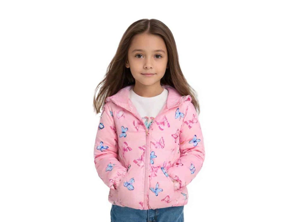Pokud hledáte moderní dětskou zimní bundu, tento kousek si vaše holčička určitě zamiluje. Originální potisk s motýlky dodává bundě veselý a hravý vzhled.