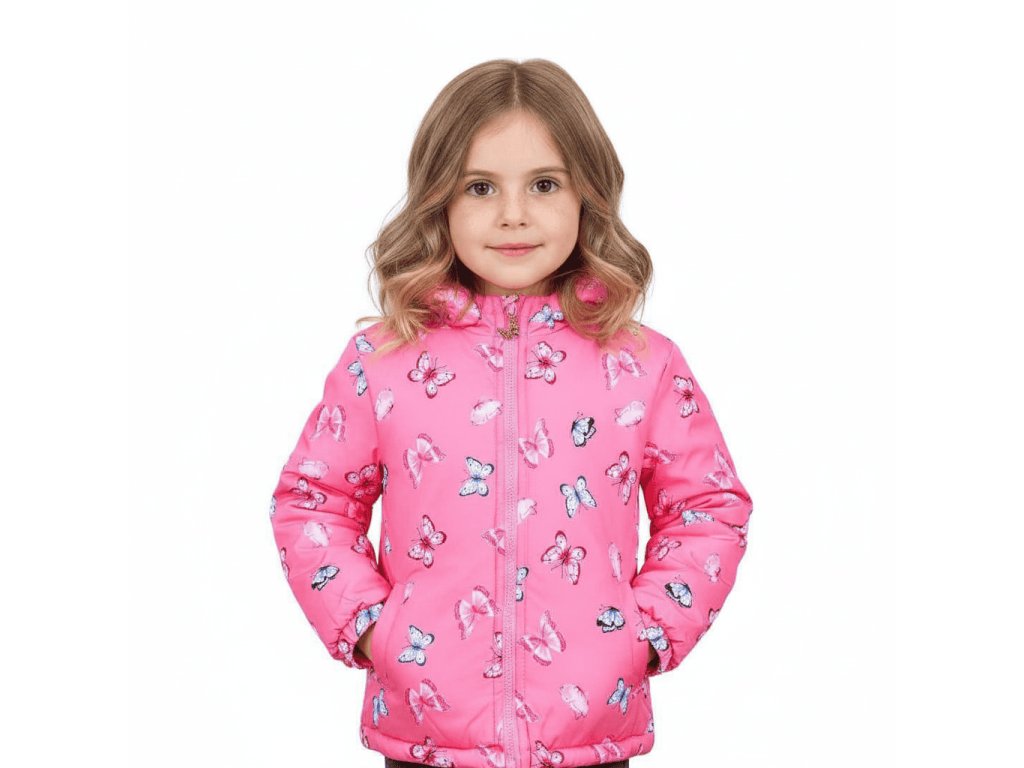 Pokud hledáte moderní dětskou zimní bundu, tento kousek si vaše holčička určitě zamiluje. Originální potisk s motýlky dodává bundě veselý a hravý vzhled.