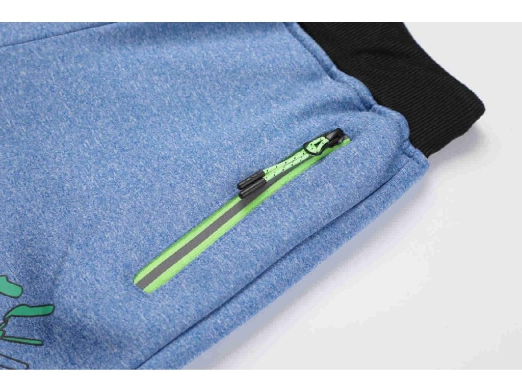 Dětské zateplené softshellové tepláky značky KUGO. Tepláky jsou v pase do širší gumy na stažení tkaničkou. Nohavice jsou do nápletu. Tepláky mají dvě funkční kapsy na zip. Materiál je hladký tenký měkký softshell s chlupem na vnitřní straně. Velmi příjemné a hřejivé tepláky na chladné podzimní a zimní období.