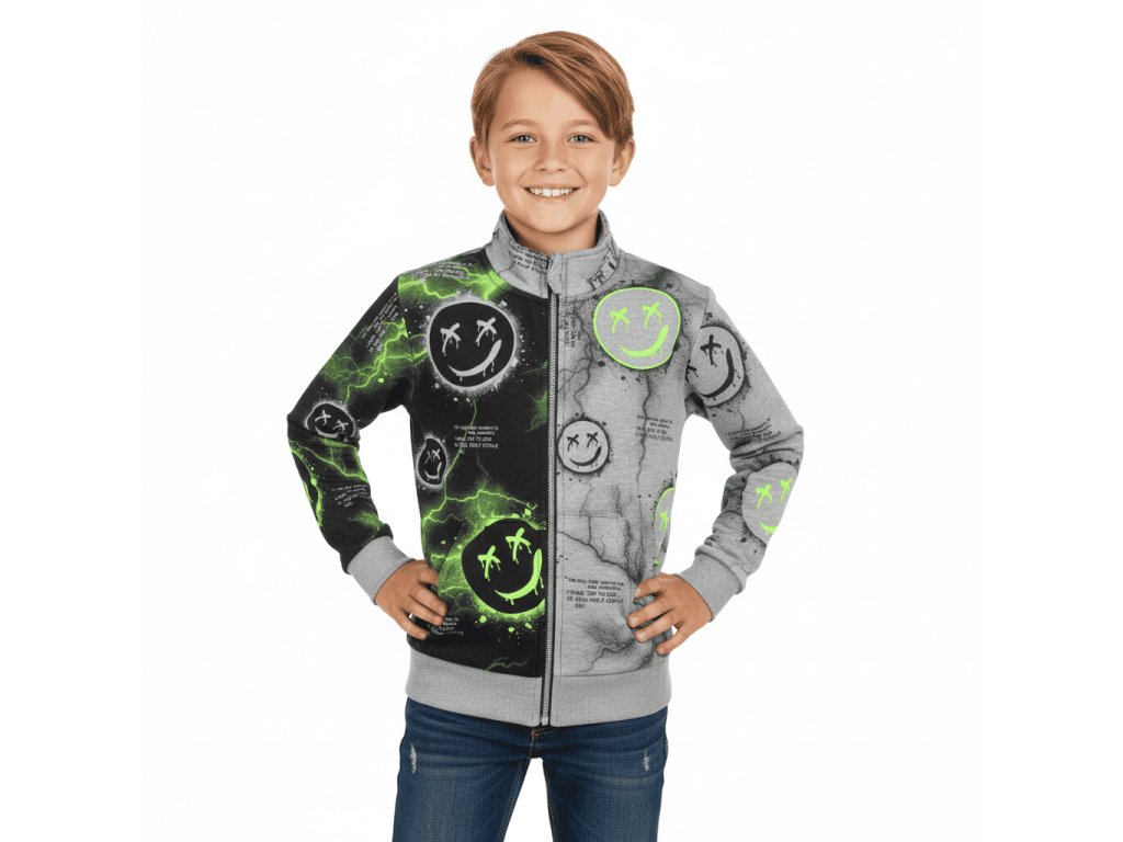 Chlapecká mikina má z vnitřní strany jemné zateplení. Zahřeje i v chladném zimním období. Mikina má na konci rukávu pružný náplet, takže rukávy nepřepadávají přes ruce, Stejný náplet je i na spodní části mikiny, tudíž příjemně obepne postavu.