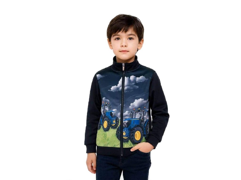 Chlapecká mikina zateplená jemným chloupkem ve skvělém designu s traktorem pro nejmenší Mikiny se stojáčkem, vpředu s dvěma kapsami vhodné na drobnosti, a kvalitním kosticovým zipem pro snadné zapínání. Mikiny jsou zakončené v pase a na rukávech pružným nápletem, aby pod mikinu nefoukalo.