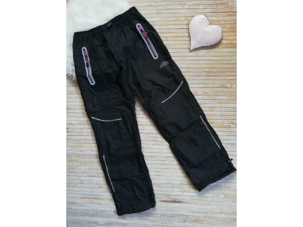 Šusťákové kalhoty s fleecovou podšívkou, které v zimě zahřejí. Materiál je voděodolný pevný šusťák. Kalhoty jsou v pase do gumy s možností regulace obvodu pasu gumičkou s olivkou. Mají dvě funkční kapsy na zipy s táhly pro snadné rozepínání. Nohavice jsou dole na stažení olivkou, aby do nohavic nefoukalo a nevnikl pod nohavici sníh.