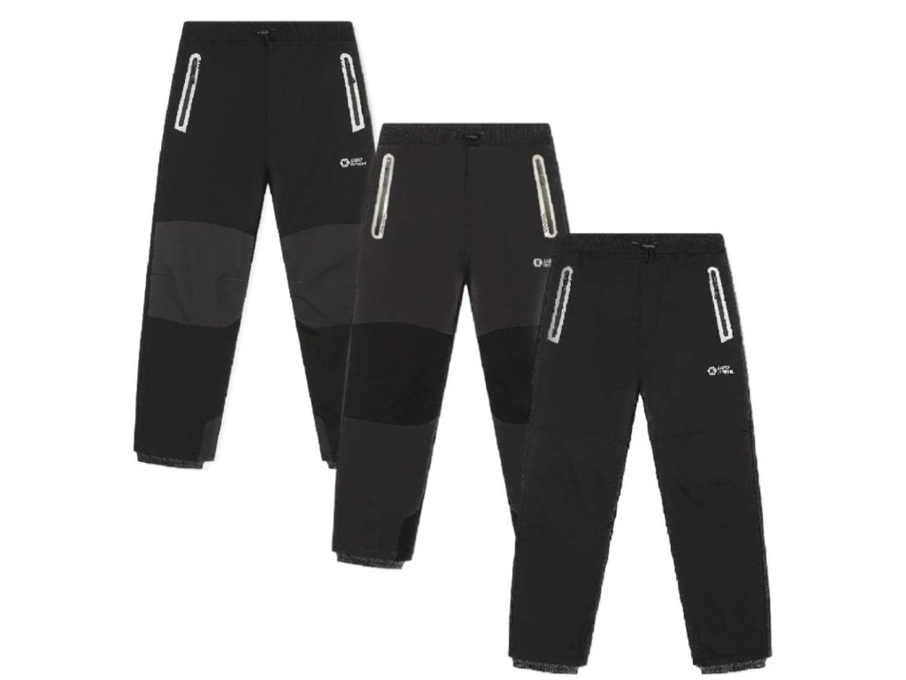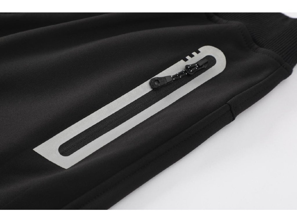 Po stranách mají kalhoty dvě funkční kapsy na zipy, které jsou lemované reflexním prvkem, v pase pružný náplet, uvnitř kterého je široká guma pro lepší upevnění v pase a ještě navíc provléknutá kulatá gumička s olivkou pro ještě lepší regulaci obvodu pro hubenější děti.