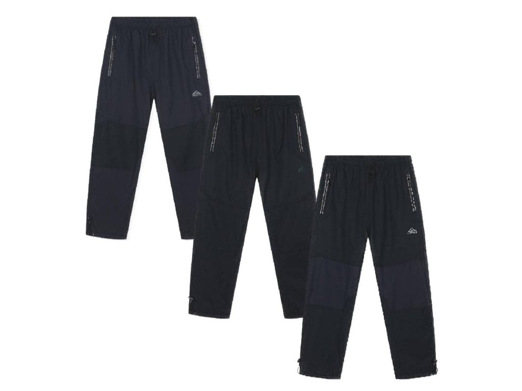 Šusťákové kalhoty s fleecovou podšívkou, které v zimě zahřejí. Materiál je voděodolný pevný šusťák. Kalhoty jsou v pase do gumy s možností regulace obvodu pasu gumičkou s olivkou. Mají dvě funkční kapsy na zipy s táhly pro snadné rozepínání. Nohavice jsou dole na stažení olivkou, aby do nohavic nefoukalo a nevnikl pod nohavici sníh.